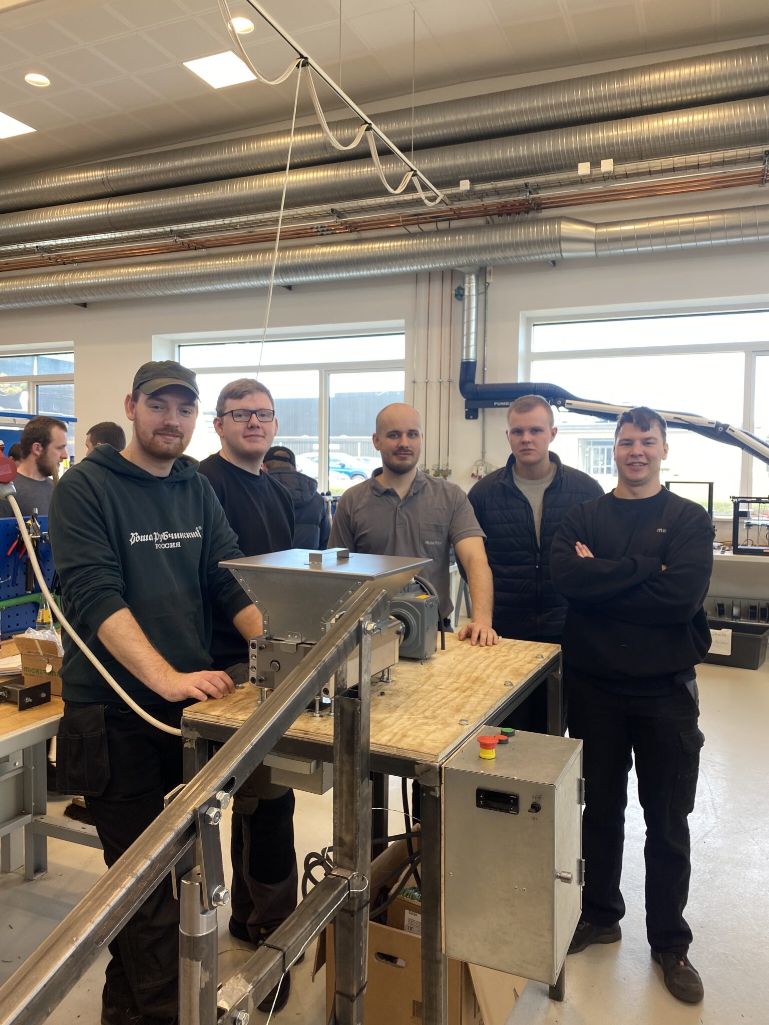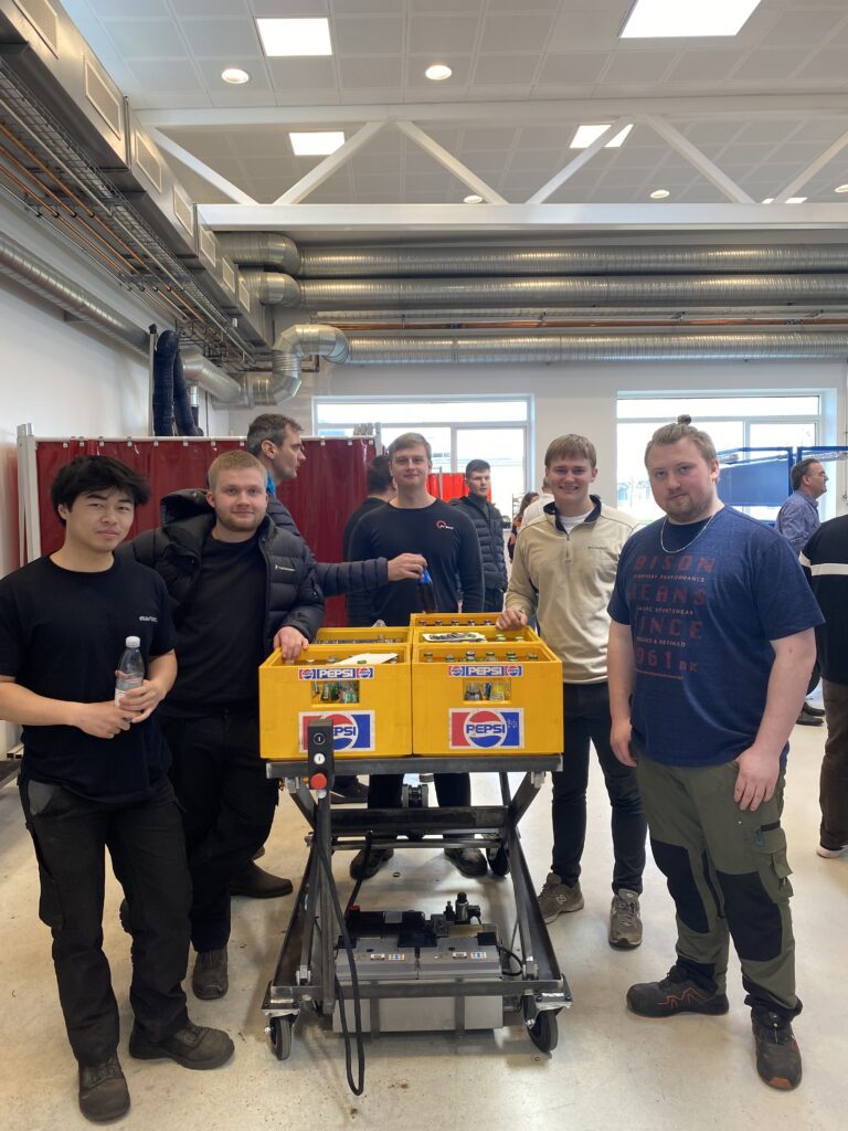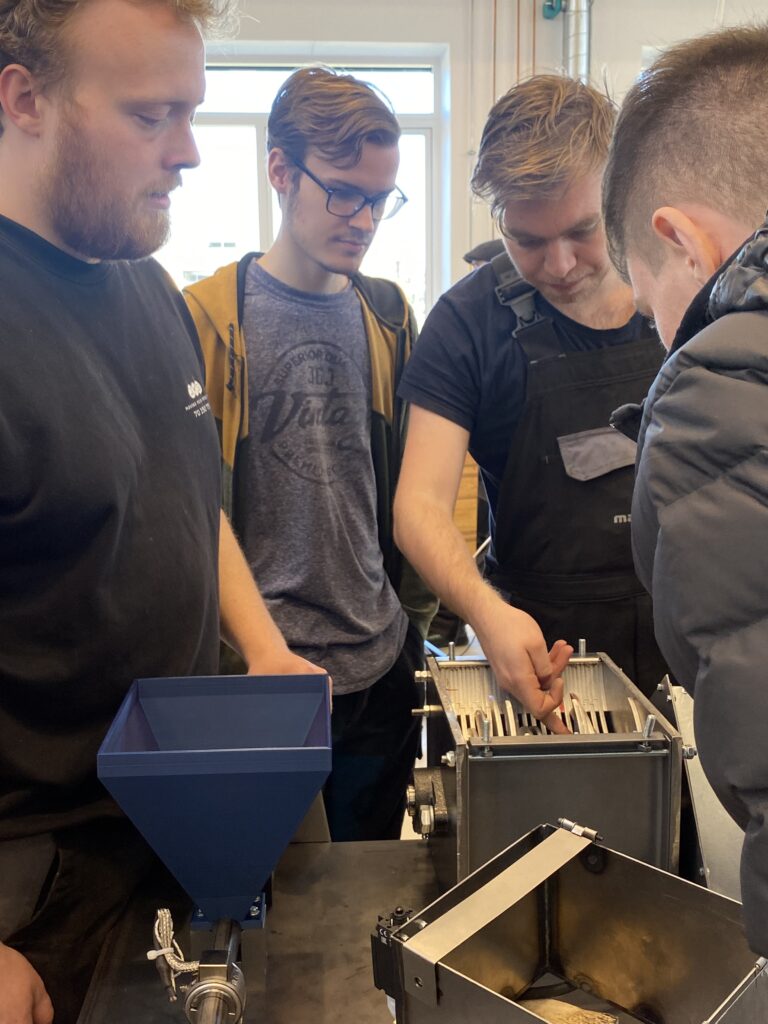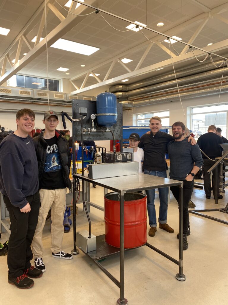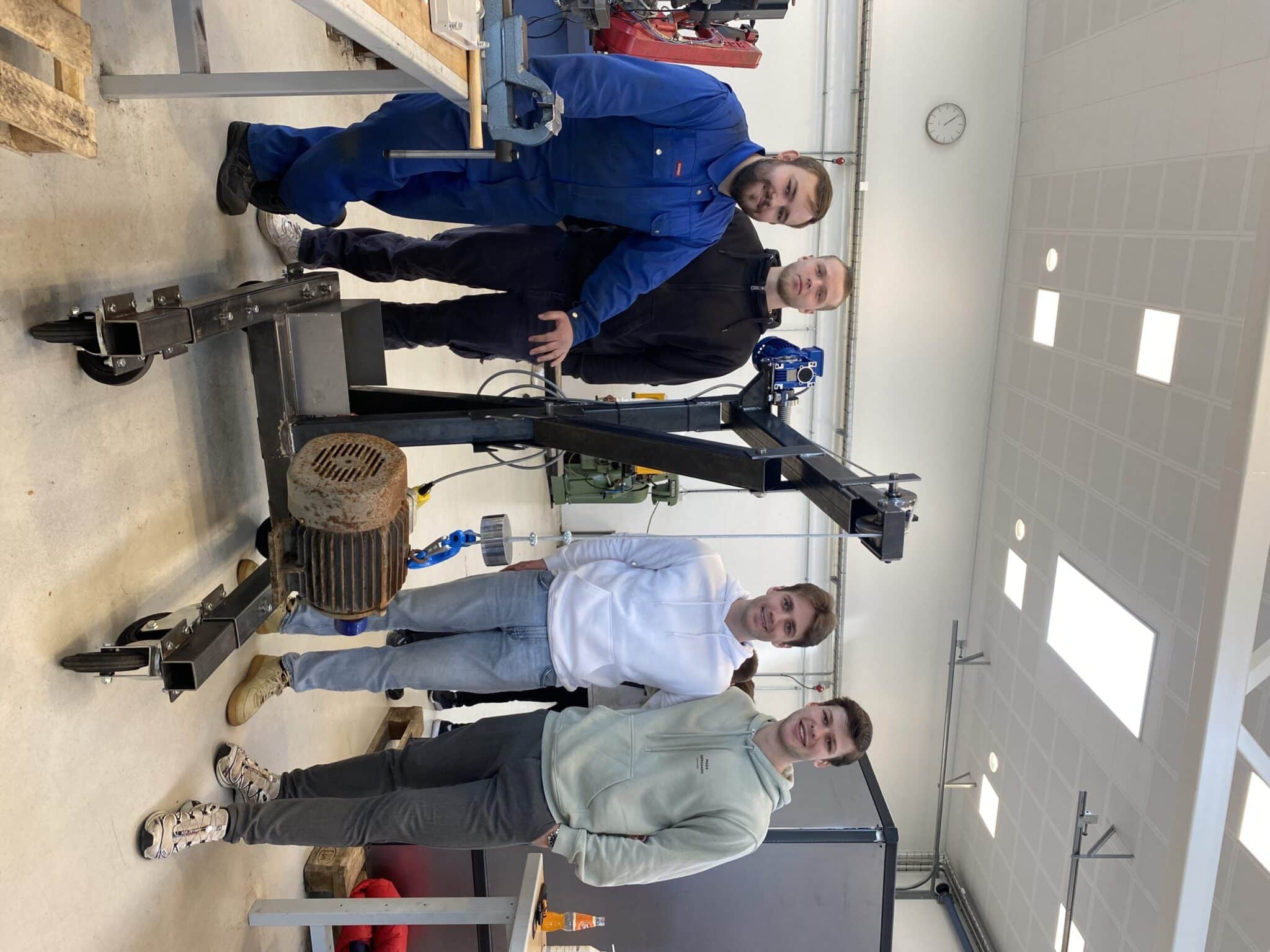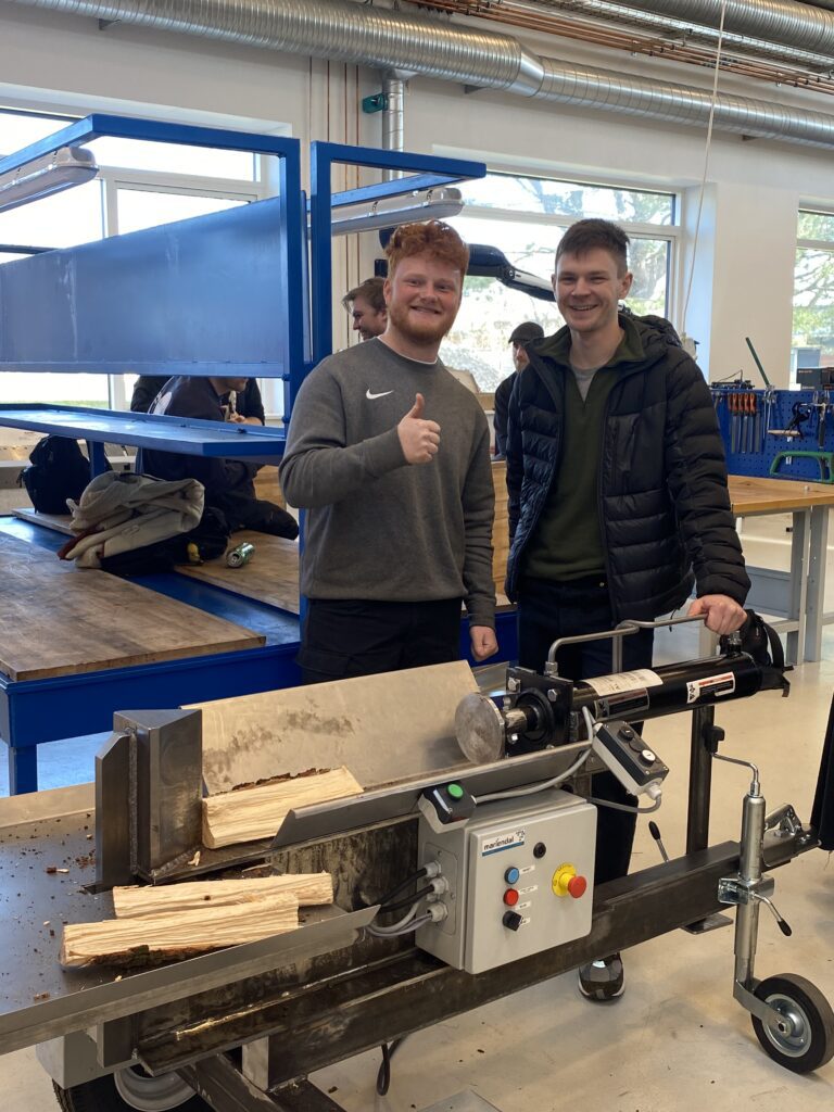 For de studerende har det også været en spændende periode. Christoffer Frederiksen og Victor Johansen har begge en baggrund i det almene gymnasium men har valgt maskinmesteruddannelsen, fordi de også godt kan lide at bruge deres hænder. Deres første projektide var en avanceret, nedgravet ølkøler, men i løbet af de første to ugers brainstorm og forberedelser valgte deres 5-mands gruppe at skifte spor til en mobil kran, som kan hjælpe med tunge løft på værksteder.