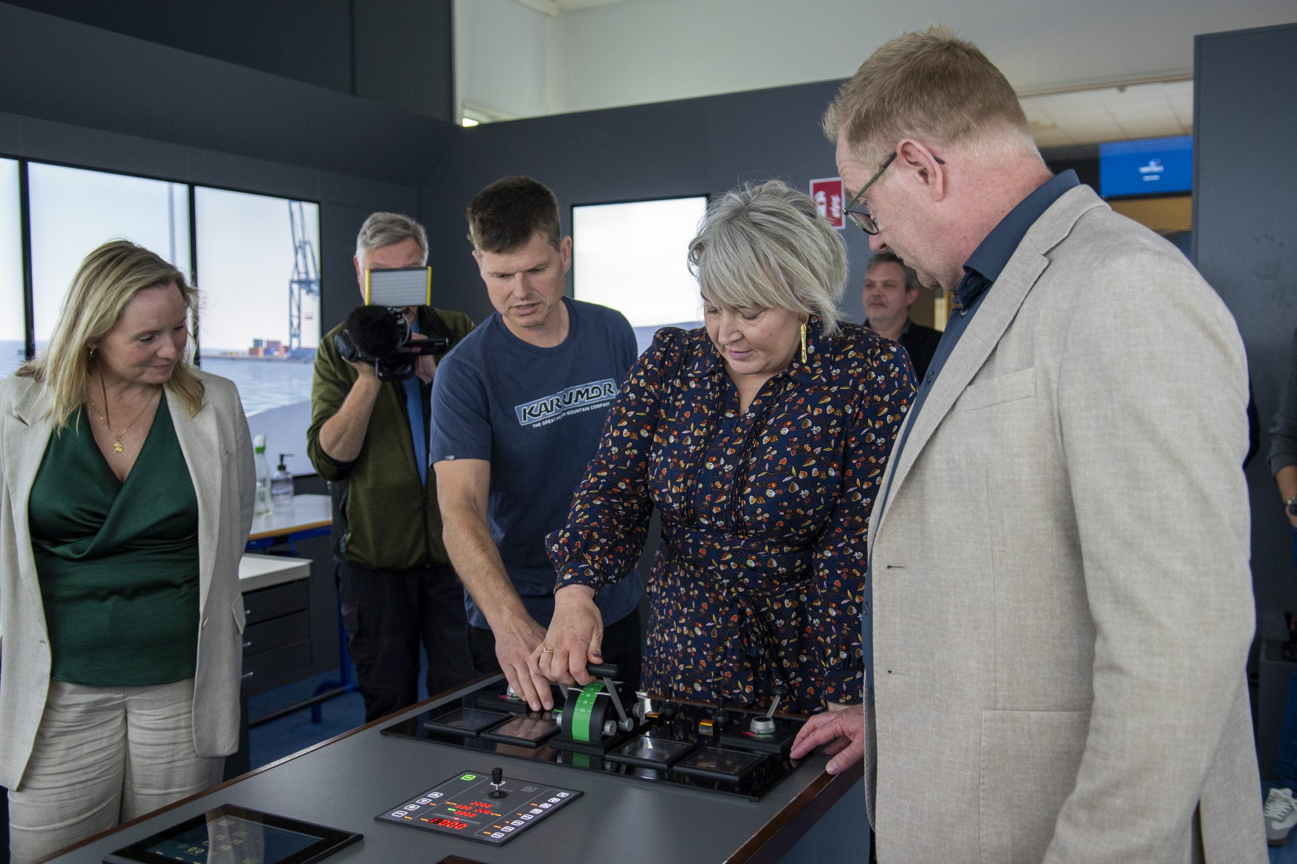 Som en del af besøget fik minister Christina Egelund og byrådsmedlem Lone Haugaard mulighed for at afprøve MARTECs avancerede skibssimulator, som bruges i uddannelsen af navigatører. Simulatoren illustrerer tydeligt, hvordan moderne teknologi og praktisk læring går hånd i hånd på MARTEC – en kombination, der er essentiel i uddannelsen af kompetencer til både civil og militær maritim sektor.