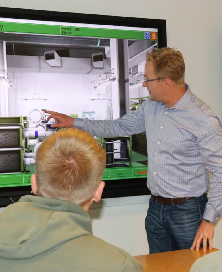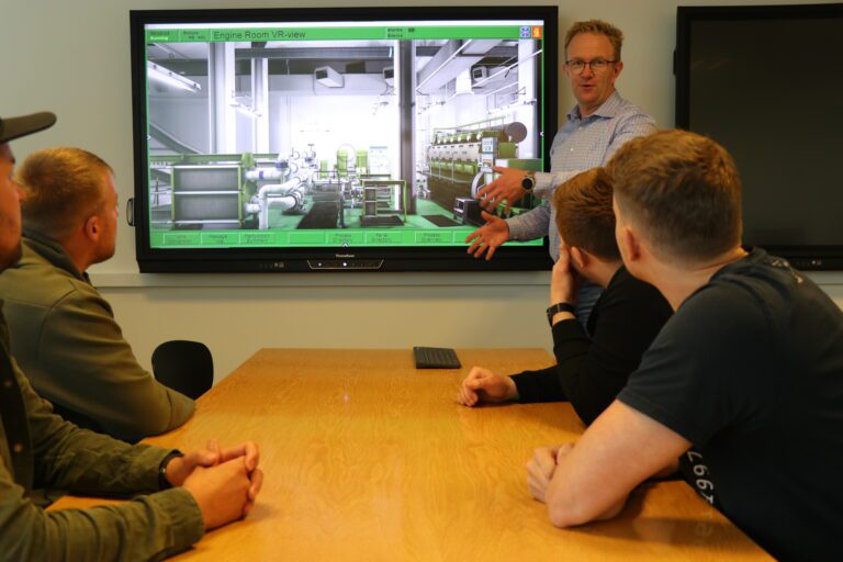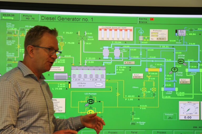 ”Det udstyr, vi havde fungerede sådan set fint, men med den nye software og hardware kan vi nu undervise i de nye skibstyper, som bruges i dag og i fremtiden. Simulatoren indeholder nemlig de nyeste skibstyper og motortyper, som kører på mere grønne brændstoffer. Samtidig kombinerer simulatoren 3D med Mimik-diagrammer. Det lyder måske lidt nørdet, men det er en fed oplevelse, at kunne klikke på en motor og derfra komme på en virtuel tur i motorrummet. Mere virkelighedsnært kan det næsten ikke blive.”